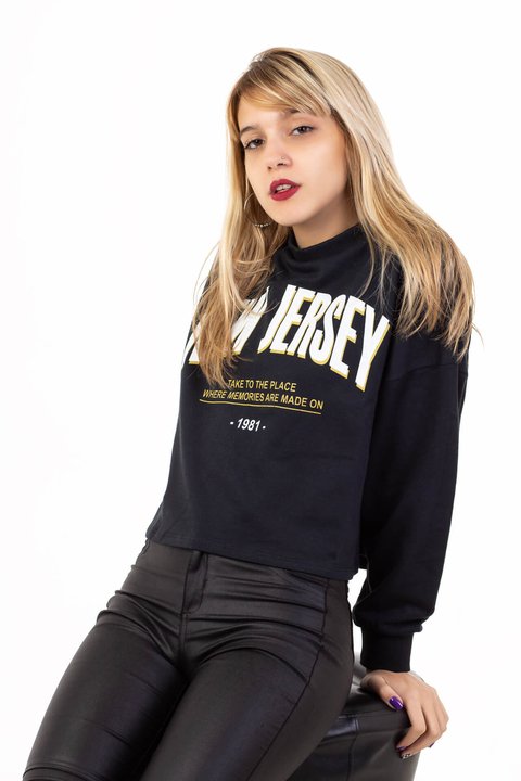 BUZO CORTO MANGA LARGA NEGRO ESTAMPADO - NEW JERSEY