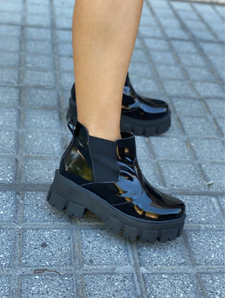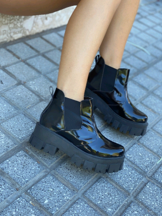 Botas con plataforma Kim Black CharolMarca: AraquinaMaterial Capellada: Simil CueroMaterial Forro: SintéticoLa horma de este modelo es normal, por ende, elegí el talle que uses siempre, que no vas a tener problema.
