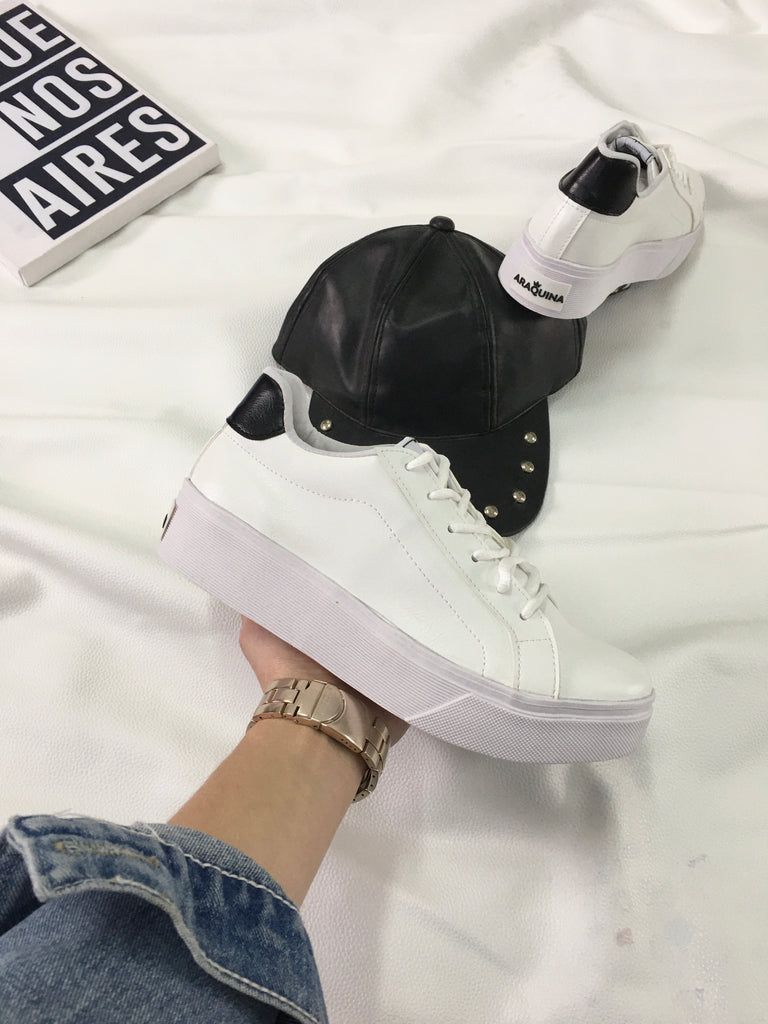 Zapatillas Leona WhiteMaterial Capellada: Eco CueroMaterial Forro: SintéticoAltura de la base: 3,5 cm aproxLa horma de este modelo es normal, por ende, elegí el talle que uses siempre, que no vas a tener problema.